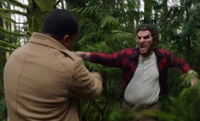 Monroe is woken in the middle of the night. Hearing noises outside, he goes downstairs. He looks around and goes to his open windows and smells the area to see if he can get a scent of who or what is around. Suddenly, he hears his door opening. He squats down behind his kitchen wall, morphs, and waits for the intruder. He attacks the intruder, only to discover it is his old friend, Larry. Monroe drags Larry to the couch and lays him down. Monroe notices the bullet wound in Larry's leg. He asks him how a Wildermann gets shot in the leg and stands up to get supplies to clean the wound. Larry then starts speaking. He mutters to Monroe that he "cant get out" and that it's "not working." Monroe isn't sure what he is talking about and Larry passes out. Monroe then realizes that Larry isn't retracting out of his Wildermann form even though he passed out.