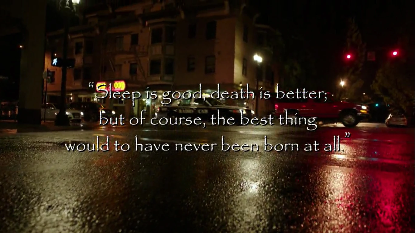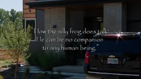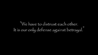 Eve: And that's good. Nick: You really believe we're all better off? Eve: I have a strength and a purpose that I never had before. I know you're here because you loved me once, and you feel responsible for the bad things that have happened, but you can't change any of it. And I can't change any of it. And if you could, would you really want to go back to the way things were, just to be happy? Happy doesn't interest me anymore, Nick. It just gets in the way. |