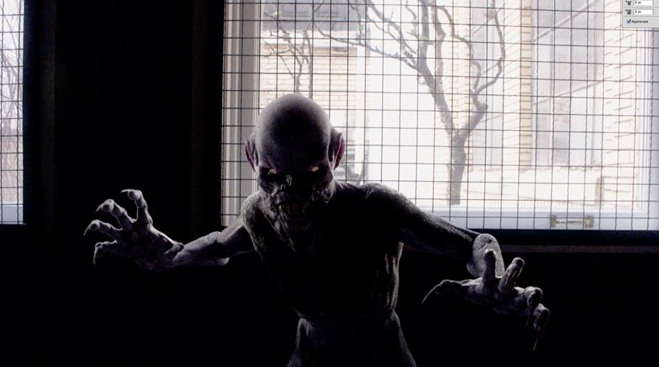 In Portland, Dana Tomas asks her husband, Sam Tomas, to pick up her refill of prenatal meds as she forgot to do so earlier in the day. Sam heads to pick up the medication while Dana heads to bed. Soon after she goes to sleep, a creature climbs the tree outside her window, opens the window slightly, extends a forked tongue towards Dana, and pokes it through her belly button into the womb. Dana wakes up with a scream of pain and briefly tries to pull the tongue out of her. She falls weakly off the bed as the creature removes its tongue from her. It opens the window more and climbs through, before crawling up the wall to the ceiling. It then extends its tongue again to Dana's belly button. Dana tries to fight back and knocks her bedside table down. She grabs an object off the floor and cuts the creature's tongue, causing it to flee out the window just before a neighbor comes running into Dana's room after hearing her screams. She finds Dana unconscious and calls 911.