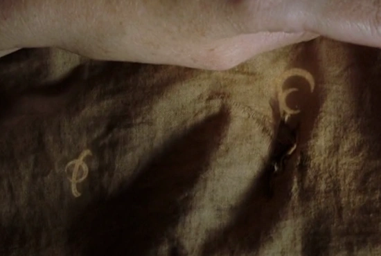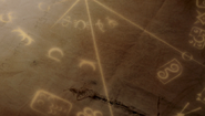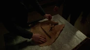 The cloth was first discovered in "Into the Schwarzwald" wrapped around the stick and, with the help of infrared thermography, was found to have several things written on it, some of which was in an unknown language. The words were found to be both auspicious and foreboding and included "miracle," as well as "hazardous, perilous, threatening, or dangerous." ("The Believer") Beyond what was written on the cloth, however, it was first discovered, via the death grip that Eve went through, that it had symbols on it as well. ("Fugitive") Through the help of Diana's powers, she could see many more symbols and writing all over the cloth, and she drew a picture depicting exactly what was on the cloth, something no one else could see, including Eve. In the group's initial research efforts, they could not find what the symbols meant, even when going as far back as 2,000 B.C. Everyone acknowledged they had never seen anything like the symbols before, though Rosalee stated that she didn't think the symbols were numerical. ("Trust Me Knot")