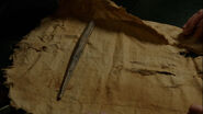 In the attempt to decipher the writing on the cloth in which the stick was wrapped, a thermographic image of the cloth was taken. The image clearly showed the location where the stick had touched the cloth. Nick, Monroe, and Rosalee were able to figure out some of the meaning of the words that were on the cloth, which pointed to the double-edged sword of the stick's power: "miracle" and "hazardous, perilous, threatening, or dangerous." ("The Believer")
