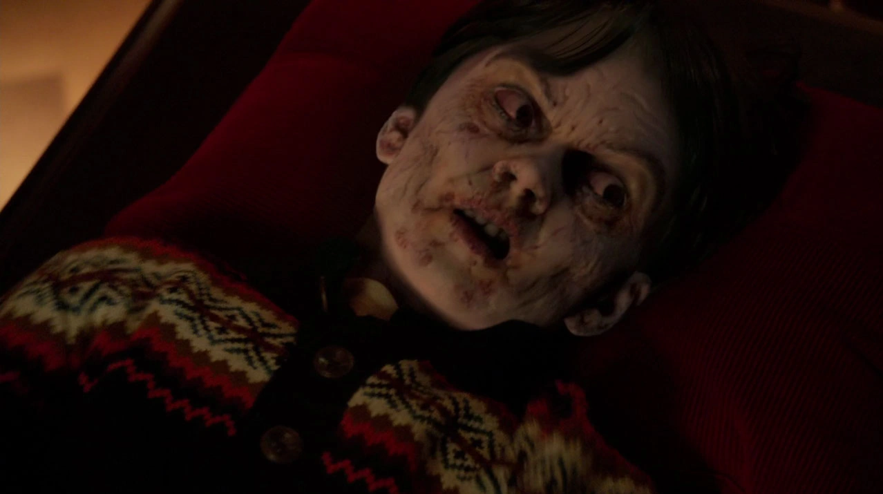Nick, Hank, Wu, and many other officers and medical personnel arrive at the church. Mathew is on a stretcher being loaded into an ambulance, and Wu tells Nick and Hank that Monsignor Paul was killed, which disappoints Hank. They go inside the church, and Wu tells them Daniel is missing. Wu points out Daniel's parents, who are being interviewed by another officer. Nick, Hank, and Wu go into the room where the exorcism took place and Monsignor Paul's body is still lying on the ground. The room is a disaster site, and Nick says it took a lot of force to kill Monsignor Paul. Hank says the parents were the first ones in the room and wonders if they could have something to do with what happened. Nick hears something, and he turns around to open a cupboard door on the altar where Daniel is hiding. Hank goes to get Daniel's parents while Nick unties the rope from Daniel's wrist and puts it into the evidence bag Wu is holding.