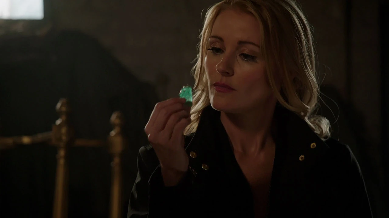 Adalind wakes up in her cell and quickly stands up. She walks over to the cell door, woges, and screams, "Open!" She is met with a high pitched frequency, forcing her to cover her ears.