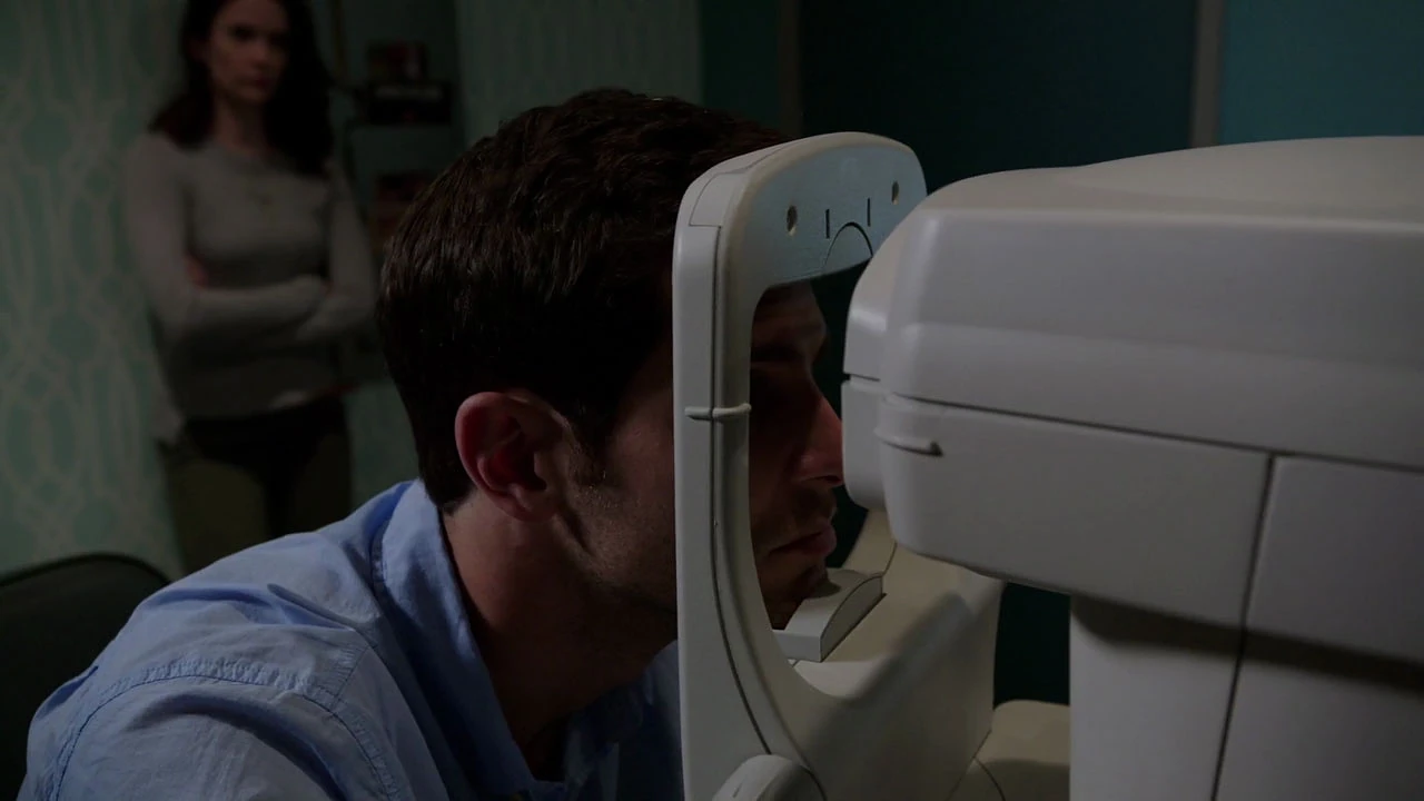 Nick is getting his eyes checked by Dr. Myers, who tells him that he may have extra cones in his eyes which allows him to see things most people can't. Juliette asks if it's something that could have happened recently, but Dr. Myers tells her he would have been born with it. Nick then asks what is triggering the headaches, and Dr. Myers tells him there is swelling in the area, which may be preventing light from triggering the cones, and that she doesn't know if it is temporary or permanent.
