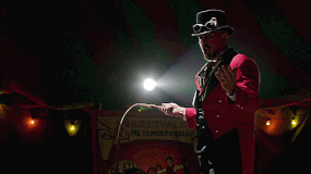 At Carnival Metamorphosia, the crowd watches inside the main tent as Hedig, the ringmaster, shows off his four acts: Damien the Last Dragon, Ivan the Strongman, Genvieve the Bearded Lady, and Maxmillian the Wolfman. All four use their Wesen abilities under the guise of magic tricks and end the performance to a standing ovation.